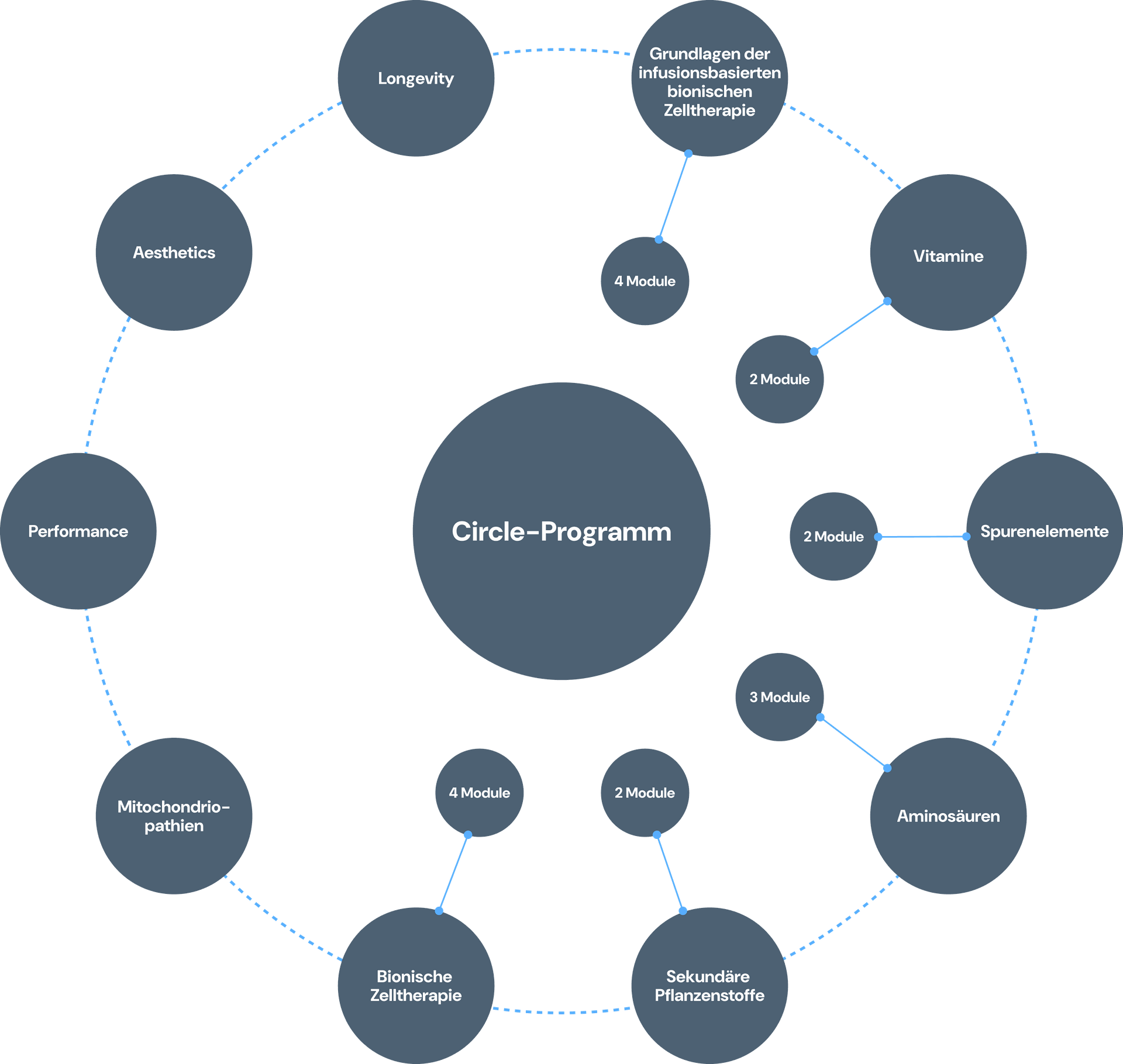 Das Schulungsprogramm folgt einem Kreislauf. Sie können flexibel in den laufenden Circle einsteigen – ohne Vorkenntnisse.